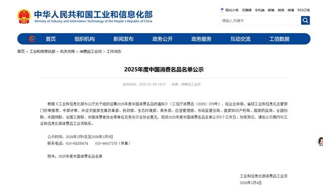 “中国消费名品”评选由工业和信息化部主导