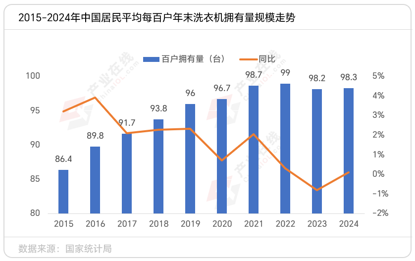 作者:mile米乐集团 日期:2026-02-13 浏览: 来源:mile官网近年来,中国洗衣机市场完成了从增量市场向存量市场的转型。家电下乡时期释放的农村市场潜力为后续市场更新换代奠定了基础。国家统计局数据显示,当前中国居民平均每百户拥有量已接近百台,连续四年在98-99台之间徘徊。